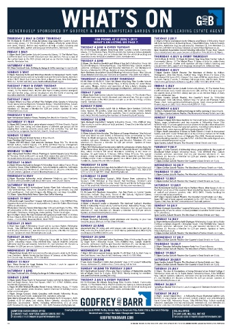 9.30am Borough Councillors’ Surgery Fellowship House, 136a Willifield Way. TUESDAY 18 JUNE Square. Entry free. All YMC orchestras and Choir will perform.